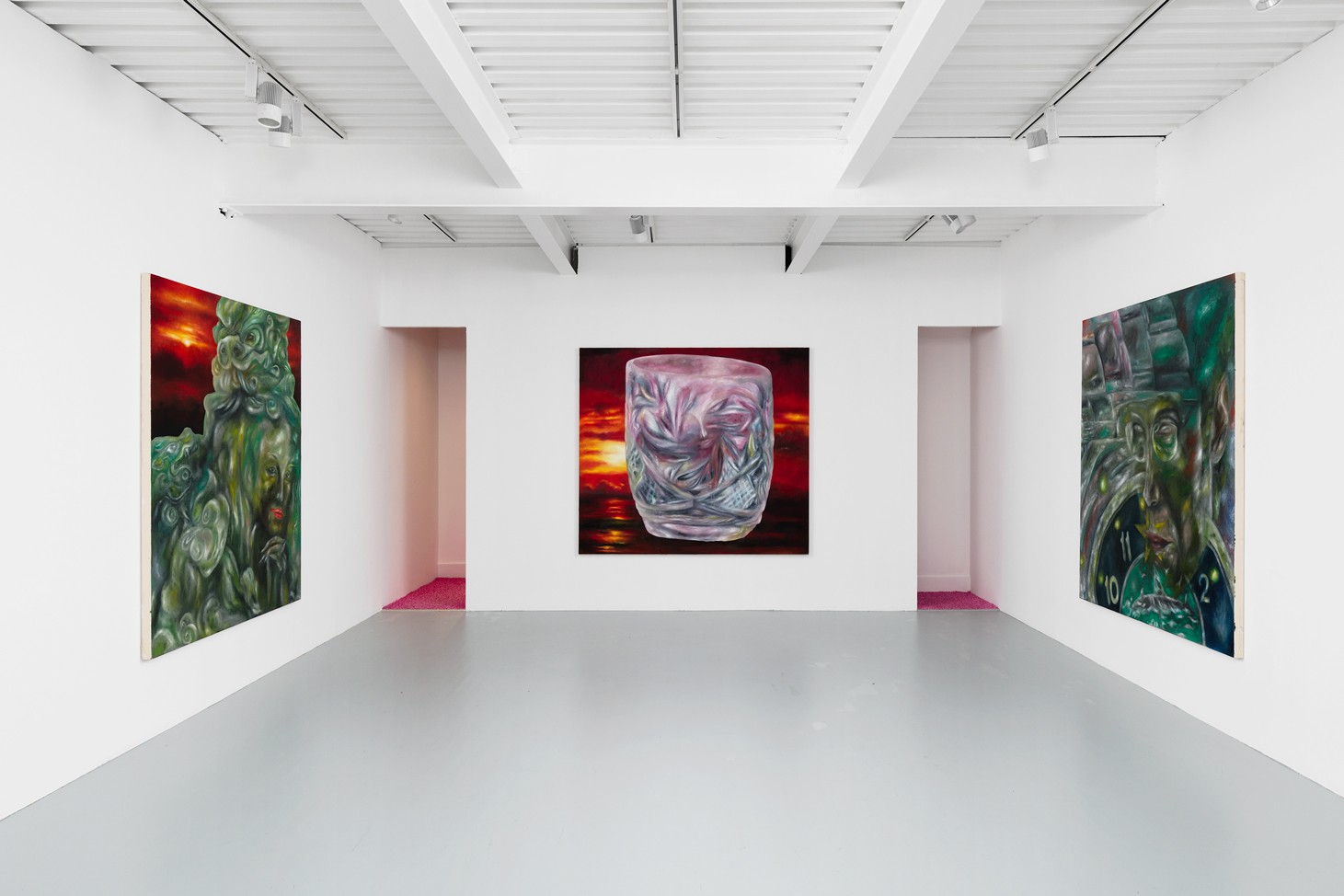 Vilte Fuller makes paintings that are dark and glamorous, replete with a surreal personal menagerie of pickled gherkins and Eastern European foodstuffs, post-Soviet architecture, silver screen vampires and militarised dolphins, porcelain ornaments, crystal glassware and nuclear sunsets, and much more besides. For her second solo show with superzoom, Fuller presents Sleeper Agent, a love-letter to the spy movie that combines her strange and apocalyptic landscapes with cliché tropes of the genre such as poisoned cocktails, gadget watches and fantastical forms of unknown espionage. Together with references to her Lithuanian heritage and contemporary political events, the exhibition portrays the future dystopia of an absurd yet strangely familiar world, offering us an intimate, eerie reflection on distorted and dramatic times.